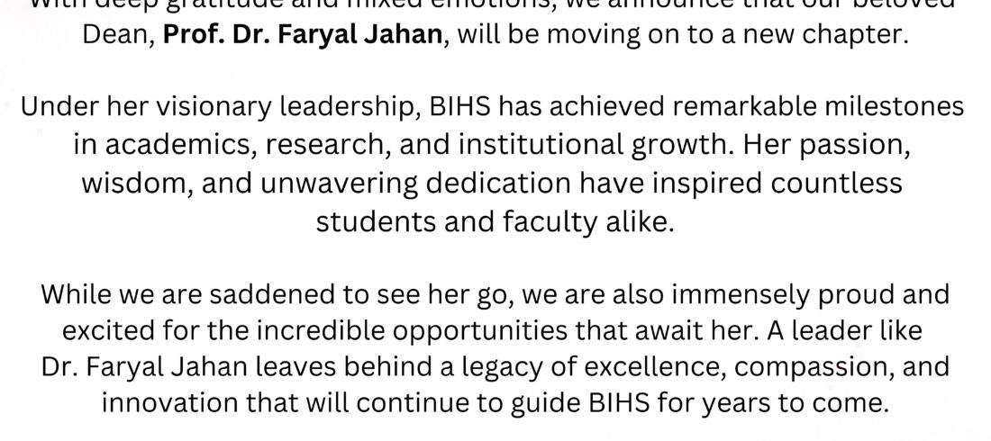 We are pleased to inform the following students that their official degrees have been received and are now ready for collection. Collect it from Controller of Examinations Office, BIHS Kindly visit the examination office at your earliest convenience to receive your hard-earned degree. degree received...Read More