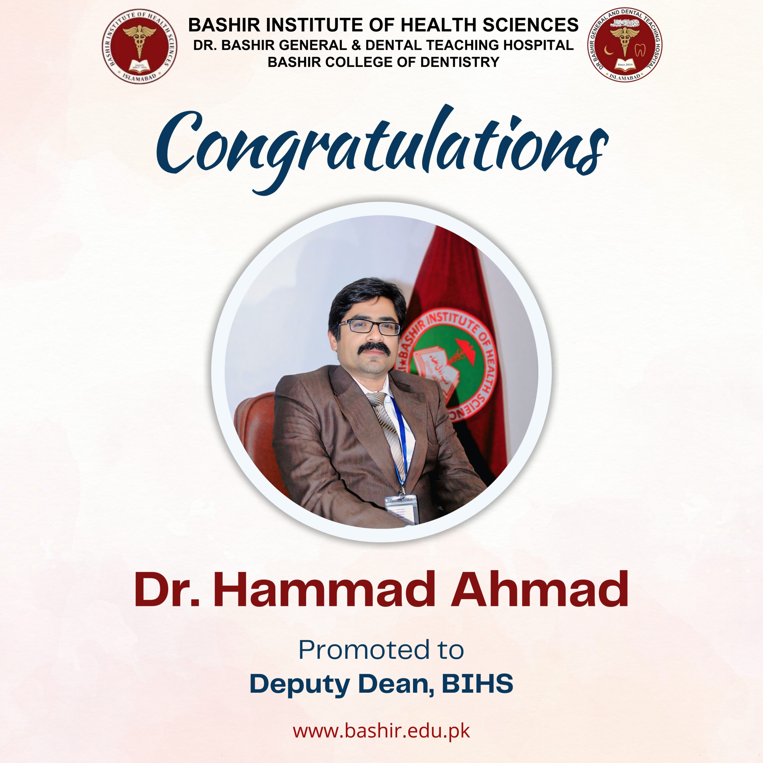bihs #Congratulations #DeputyDean #Leadership #BIHS #DrHammadAhmad #NewRole